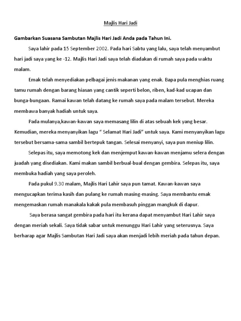 Contoh Karangan Bahasa Inggeris Tentang Hari Jadi